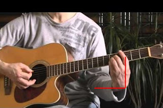 또한, 기타의 흔들림을 막기 위해서 오른쪽 팔꿈치로 고정시키는 거죠.